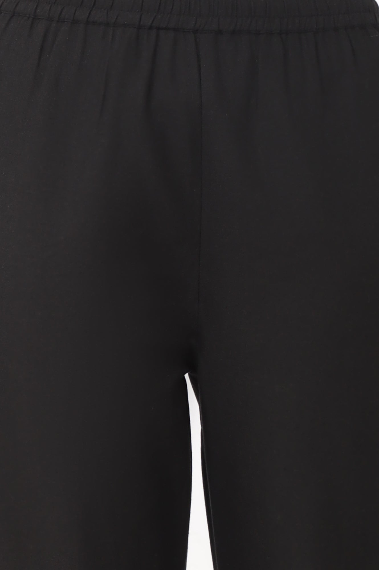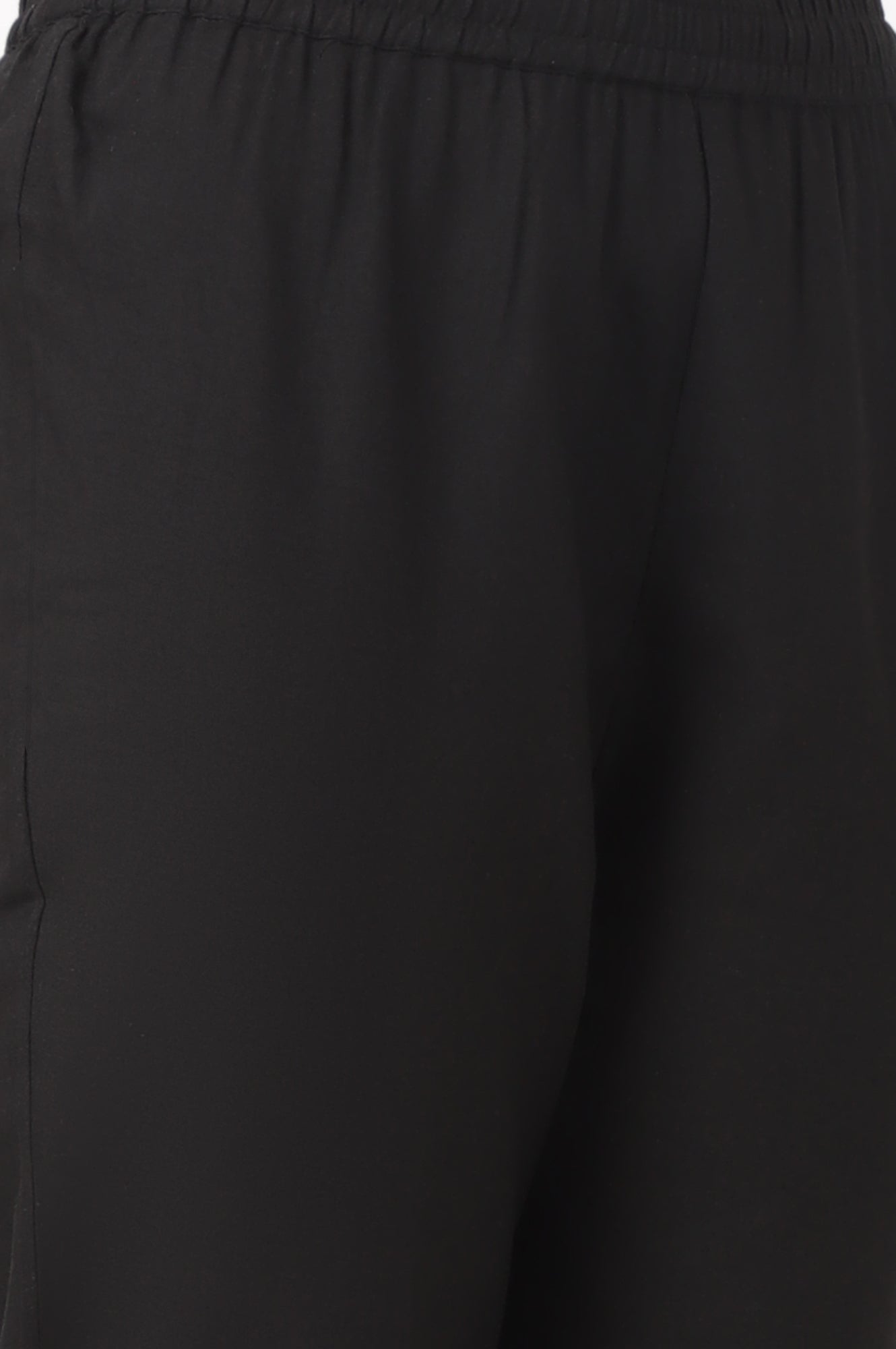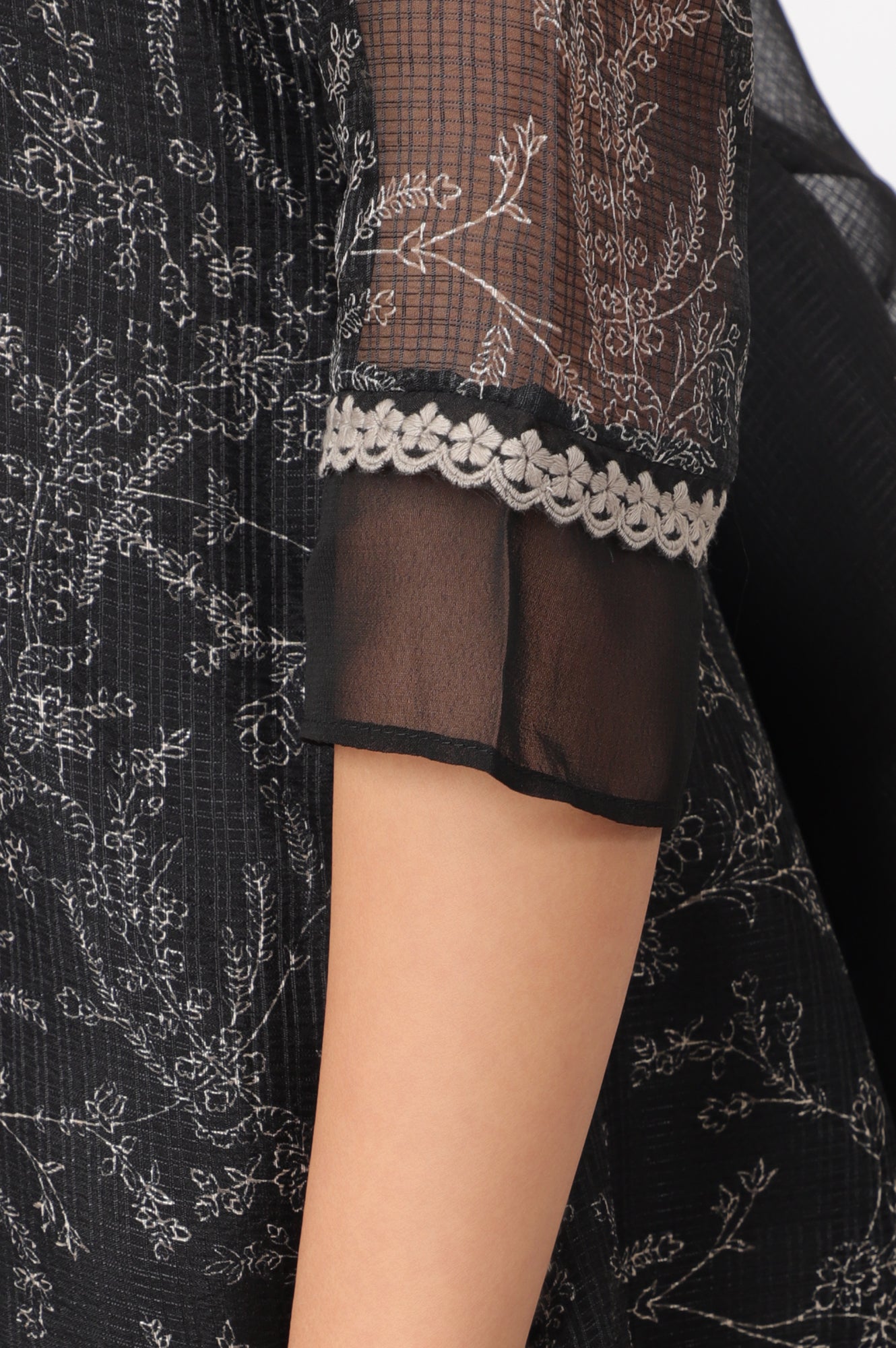 Black Floral Printed Kota A-line Kurta, Pants and Dupatta Set