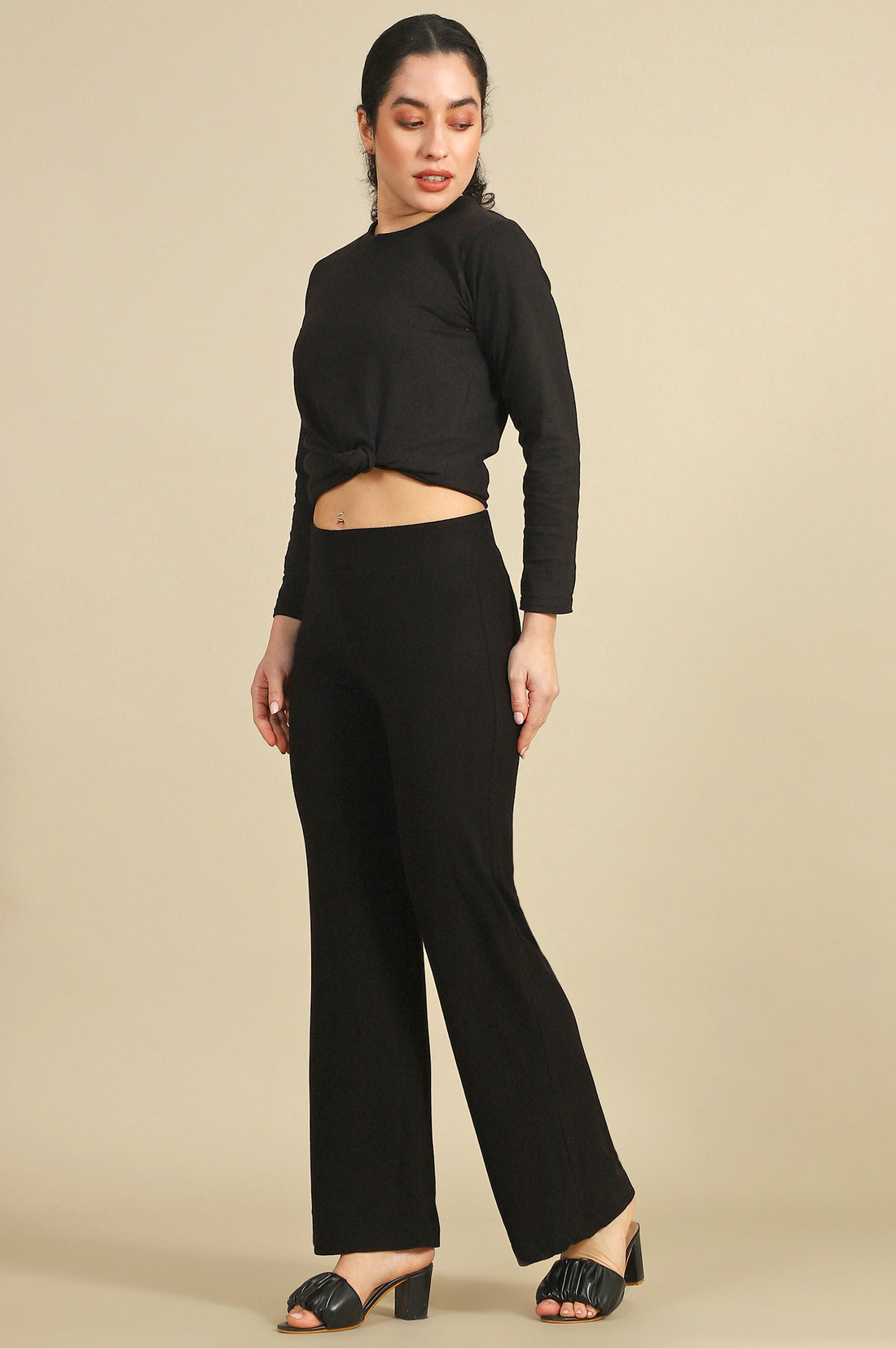 Effortlessly chic and versatile, these black knit pants redefine comfort and style. Crafted from a premium blend of rayon and spandex, the fabric offers a soft, breathable feel with a touch of stretch for unrestricted movement. The straight-fit silhouette creates a streamlined look, while the slip-on closure ensures ease and convenience. Perfect for casual outings or relaxed evenings, these pants pair beautifully with graphic tees, blouses, or even cropped tops. The solid black color provides endless styling possibilities, making them a timeless addition to your wardrobe. Elevate your everyday ensemble with these sleek and comfortable pants designed for the modern woman.