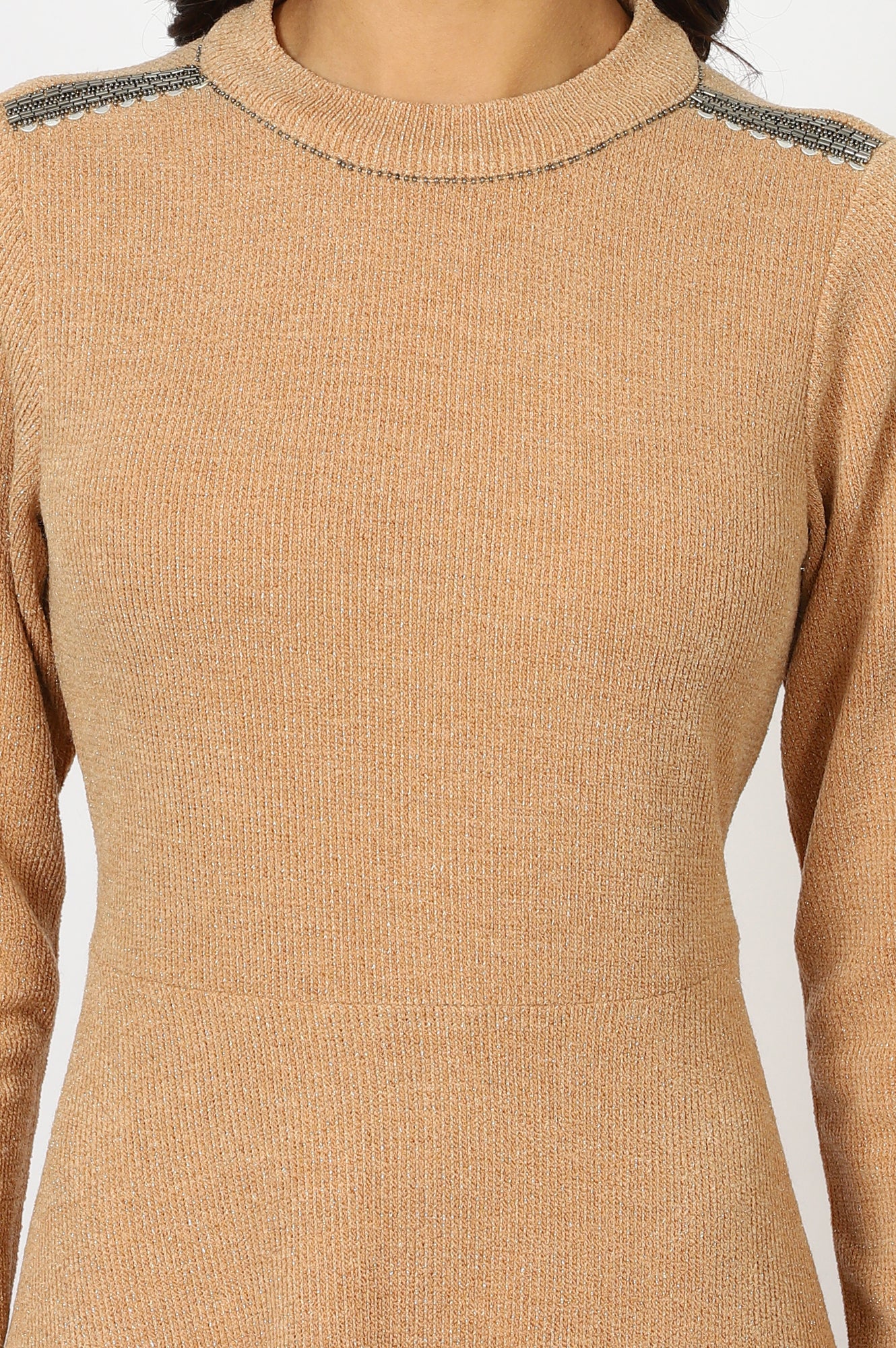 Discover the perfect blend of style and comfort with this stunning woven dress from W. Crafted with a unique composition of 70% polyester, 15% metallic, 10% rayon, and 5% spandex, this fusion dress offers both elegance and flexibility. The khaki-colored gown features a sophisticated mandarin neckline and full sleeves, making it suitable for various casual occasions. The above-ankle length adds a modern touch to this flared dress, while the metallic hardware elevates its overall appeal. Perfect for women who appreciate a fusion of traditional and contemporary styles, this dress combines the best of both worlds. The polyester blend ensures durability and easy maintenance, while the addition of spandex provides a comfortable stretch. Whether you're attending a casual gathering or a day out with friends, this versatile dress is sure to make a statement. The unique construction technique and material composition offer a luxurious feel and appearance, making it a must-have addition to your wardrobe.