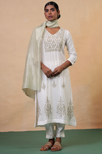 Folksong Off White Cotton A-Line Embroidered Chikankari Regular Kurta
