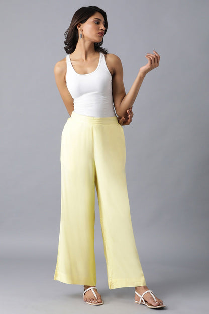 Sunshine yellow straight cut palazzo crafted from 100% cotton for a breathable and comfortable fit. The slip-on closure and straight hem make it easy to wear, while the woven fabric adds a touch of sophistication. Perfect for casual outings, pair this versatile piece with tops, kurtas, or straight kurtas for a trendy look.