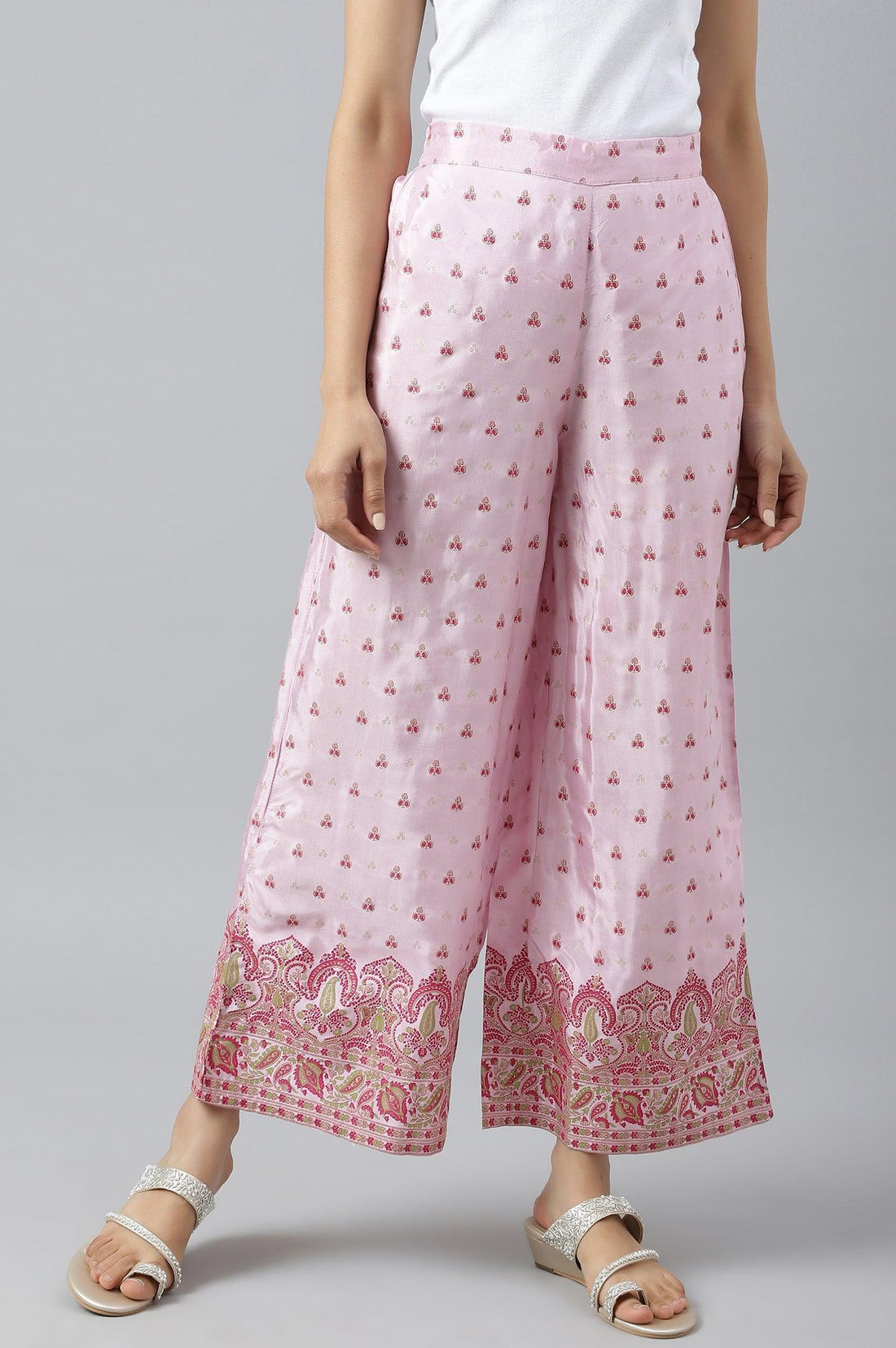 Cameo Pink Floral Glitter Printed Mid-Rise Parallel Pants