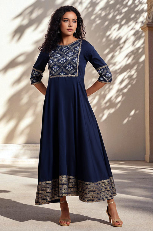 Raisin Purple Full-Length Panelled Dress. It Is Adorned With Intricate Floral Embroidery On The Yoke And Sleeves, Using Tonal Threads And Zari. Sparkling Sequins Add A Touch Of Glamour, While The Voluminous Flare And Heavy Printed Border Make It Perfect For The Festive Season