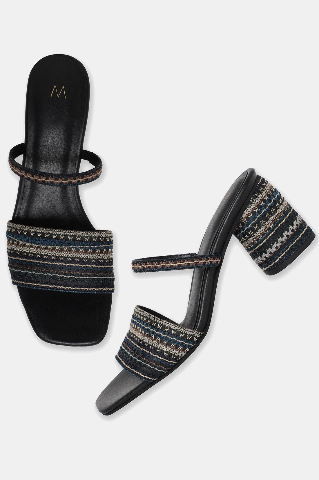 A Geometric Style Embroidered, Cylindrical Block Heel, With Memory Foam Sockliner, That Provides Extreme Cushioning For Whole Day Comfortable Wear.