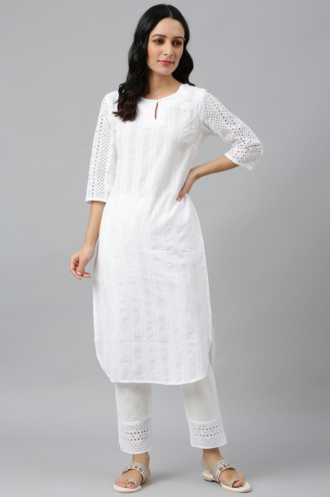 Textured kurta With Schiffli Pants