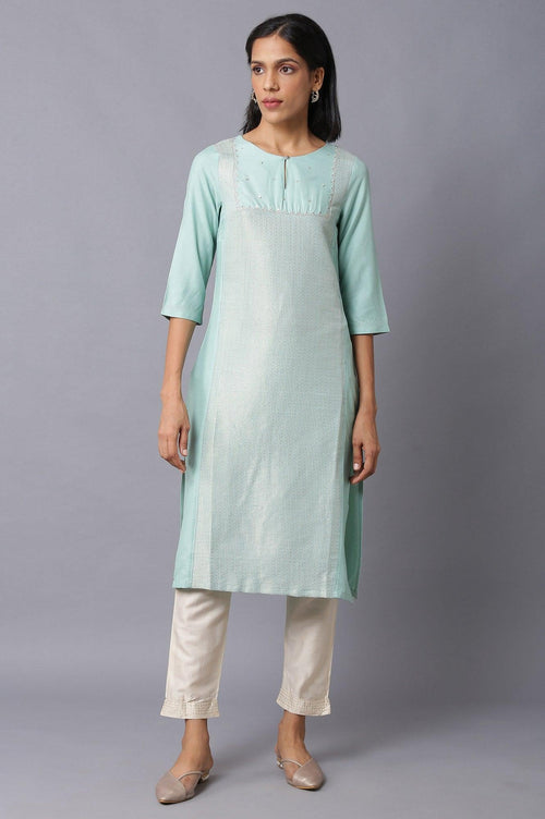 Deep Yellow Panelled kurta Made In Lurex Dobby Fabric With Sequin Highlighting On Neck
