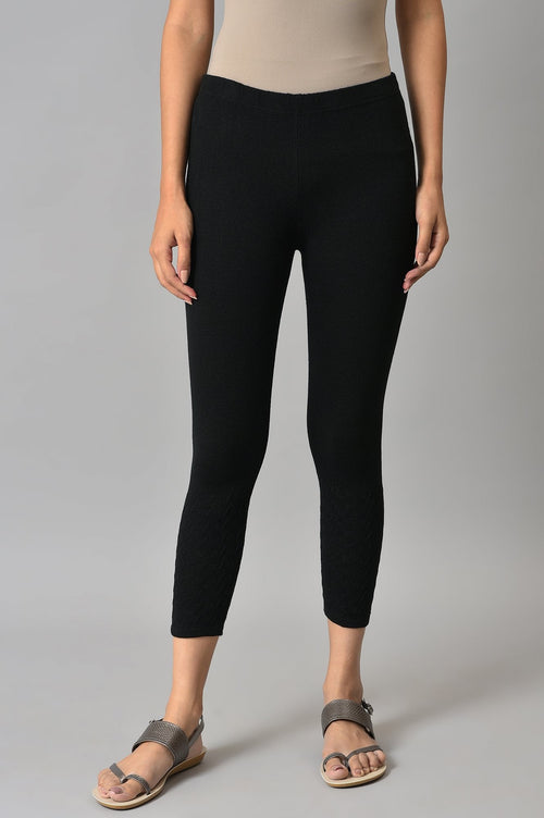 Crafted for the modern woman, these black knit tights combine style and comfort effortlessly. The geometric pattern adds a subtle texture, while the elasticated waistband ensures a snug fit. Made from 100% acrylic, these mid-rise tights are perfect for casual outings or cozy winter days. Pair them with your favorite kurtas or tops for a chic, versatile look.
