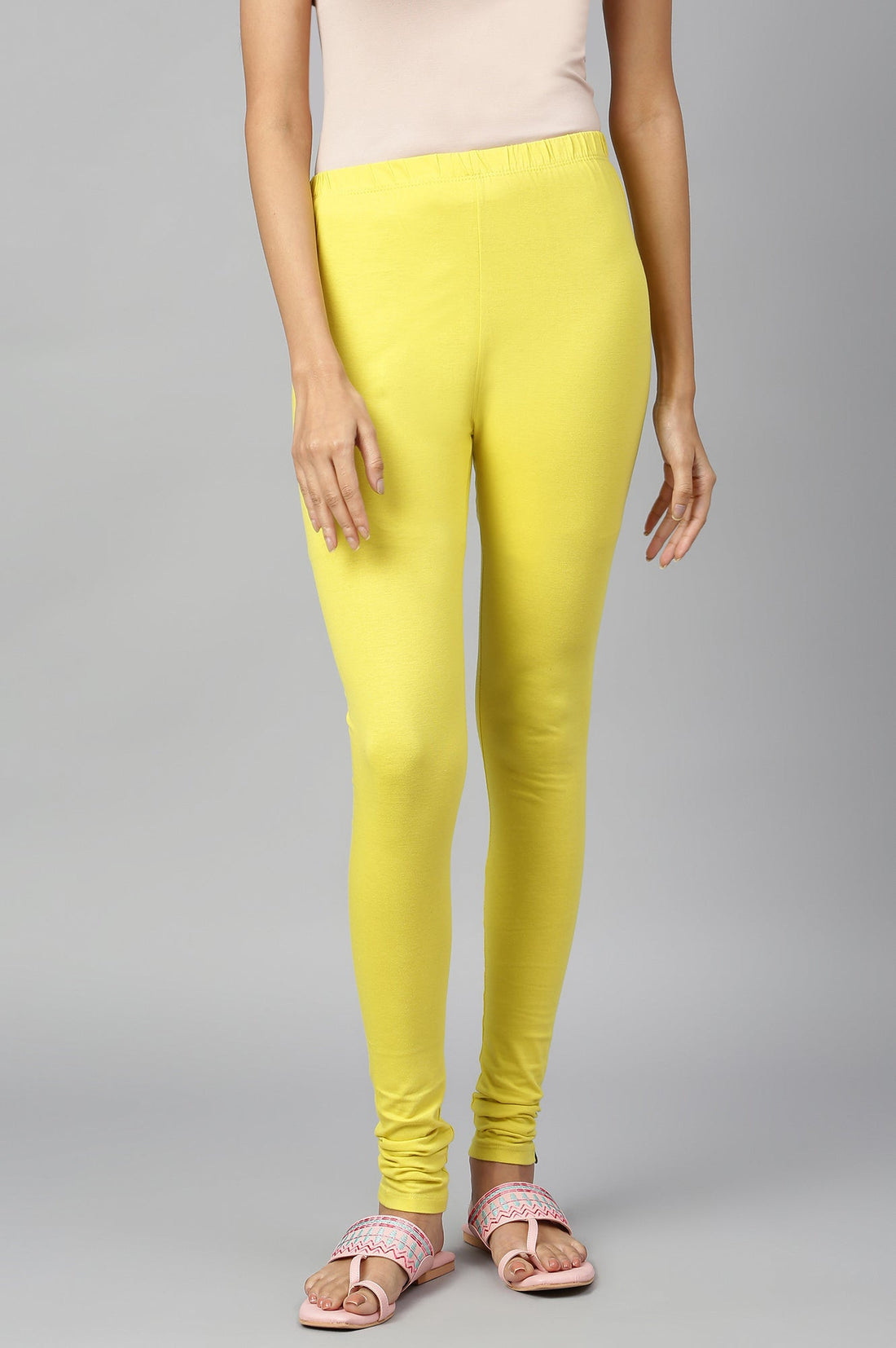 Green Skin Fit Churidar In Mid-Rise And Elasticated Waistband.