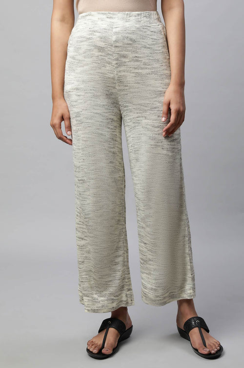 Crafted for effortless elegance, this Grey solid straight-fit palazzo is a versatile addition to your wardrobe. The partially elasticated waistband ensures a comfortable fit, while the soft fabric drapes beautifully for a flattering silhouette. Perfect for casual outings or relaxed evenings, this palazzo pairs seamlessly with tops, kurtas, or tunics to create a chic and polished look.