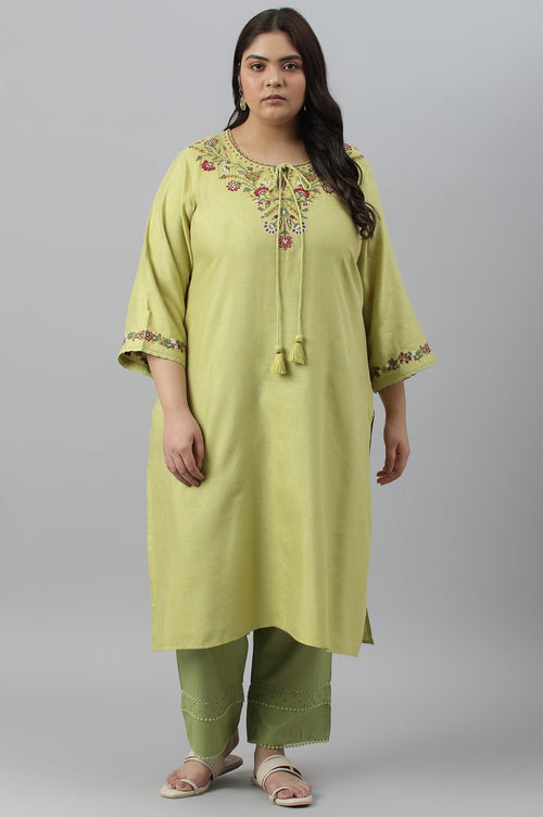 Green Fusion Plus Size Embroidered kurta - wforwoman