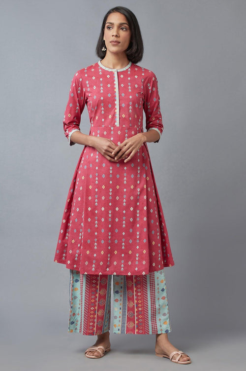 This charcoal grey kurta set will be your favourite whether you are going to wear it for casual day out or in office. This contemporary set includes a kurta, adorned with geometric print and has A-line silhouette. Coordinated with matching coloured geometric print parallel pants in mid-rise and partially elasticated waistband.