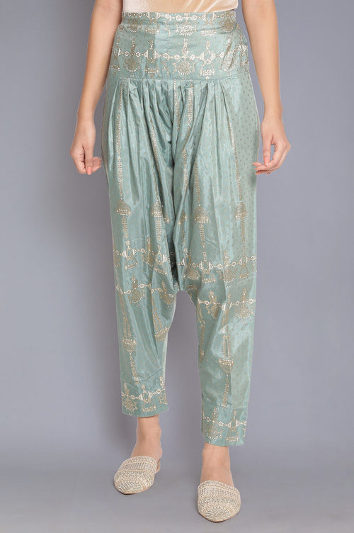Spruce green coloured regular fit salwar in mid-rise and elasticated waistband.