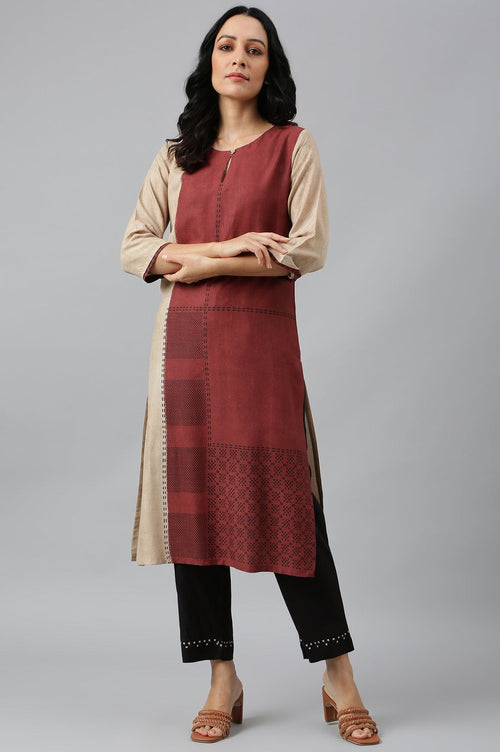 Ecru Red Placement Print