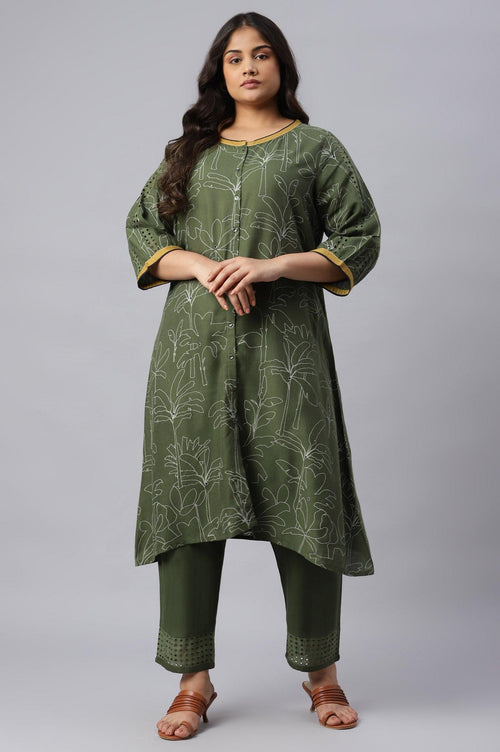 Embrace comfort and style with this charming ethnic outfit featuring a kurta and straight pants. Made from a unique blend of 88% rayon and 12% flax, this ensemble offers a perfect balance of softness and durability. The green color adds a fresh and vibrant touch to your look, making it suitable for various casual occasions. The printed design adds visual interest and depth to the outfit, creating a captivating appearance. Crafted using a woven construction technique, this set ensures longevity and a premium feel. The three-quarter sleeves provide comfort and versatility, allowing you to wear it across seasons. The round neckline adds a classic touch, complementing the overall design. The A-line silhouette of the kurta creates a flattering and feminine look, suitable for different body types. The addition of flax in the fabric composition adds a natural and eco-friendly element to this stylish ensemble, perfect for the conscious fashion enthusiast.