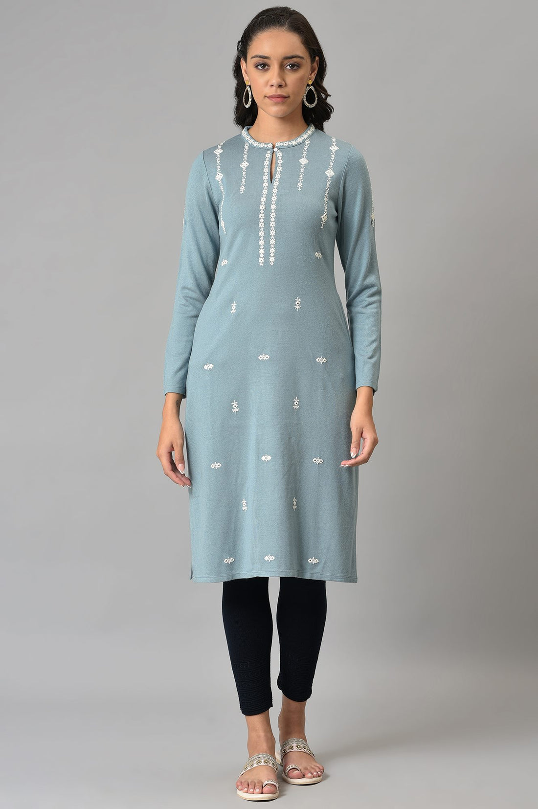 All Over Ditsy Embroidered Straight kurta With Intricate Single Thread Embroidery At Neck