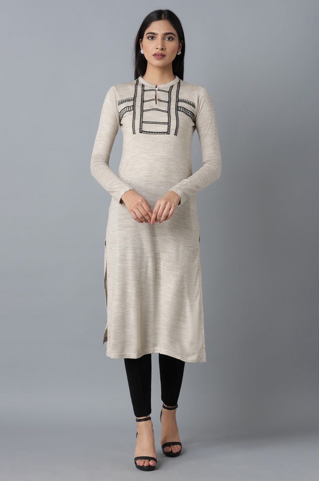 Beige Solid Winter kurta