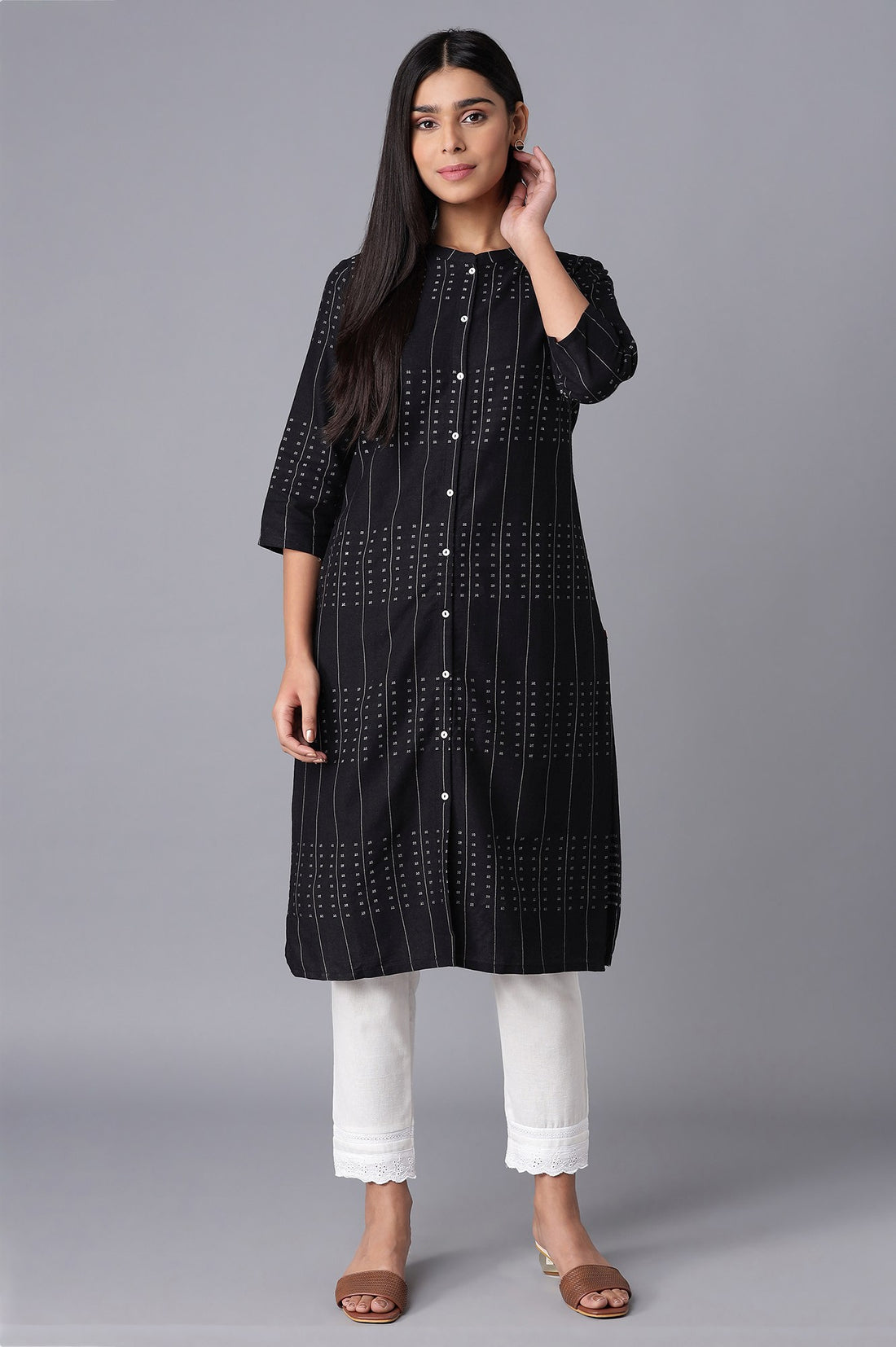 Black Printed Button Down kurta