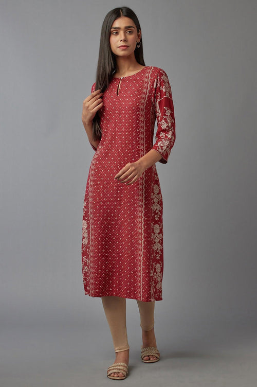 Embrace casual elegance with this black kurta, designed for everyday comfort and style. The floral printed pattern adds a feminine touch to this ethnic piece, making it perfect for various casual occasions. Crafted from 100% viscose, also known as rayon, this kurta offers exceptional softness and breathability. The straight silhouette ensures a flattering fit for different body types, while the three-quarter sleeves provide versatility for various seasons. The keyhole neckline adds a unique detail, enhancing the overall design. This woven kurta combines traditional elements with modern aesthetics, making it a versatile addition to your wardrobe. Whether you're running errands or meeting friends for lunch, this kurta will keep you comfortable and stylish throughout the day.