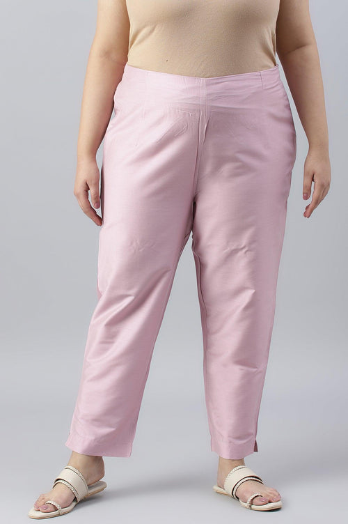 LEAF GREEN SOLID MID RISE SLIM PANTS IN PS WITH A PARTIALLY ELASTICATED WAISTBAND