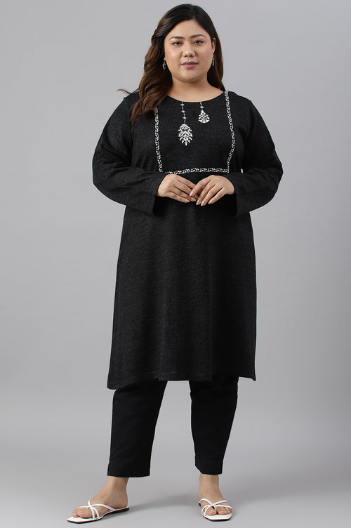 Black Coloured Light Festive Winter kurta. The kurta Is Designed In A-Line Silhouette And Features Thread Embroidery On Yoke.