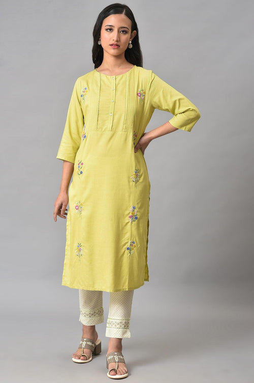 Crafted In Premium Rayon Fabric, This Petal Purple Straight kurta Is A Perfect Pick For Summer Day Look. This Pretty And Elegant kurta By W Features Thread Embroidery And Has Pintucks On Yoke.
