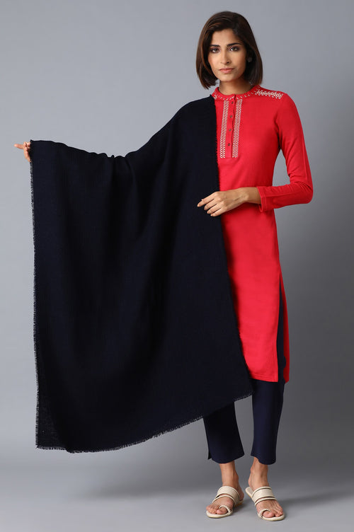 Navy Blue Self Textured Shawl