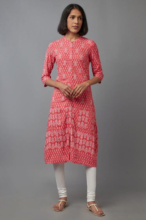 Elevate your ethnic wardrobe with this stunning straight-fit kurta designed for the modern woman. Crafted from 100% viscose, this red kurta offers both comfort and style. The band neckline adds a touch of sophistication, while the geometric pattern creates a visually appealing look. Perfect for casual occasions, this three-quarter sleeve kurta combines traditional elements with contemporary design. The woven construction technique ensures durability and a high-quality finish. This versatile piece can be easily paired with your favorite bottoms for a chic ethnic ensemble. Pair it with stylish sandals to complete the look, exuding effortless elegance. Versatile and timeless, this outfit is perfect for making a statement at any occasion, day or night.