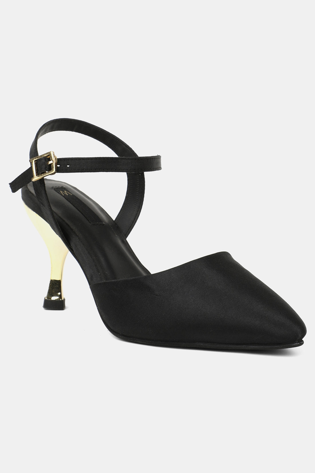 Classic sandal with a metallic plated stiletto for formal & occasion wear.