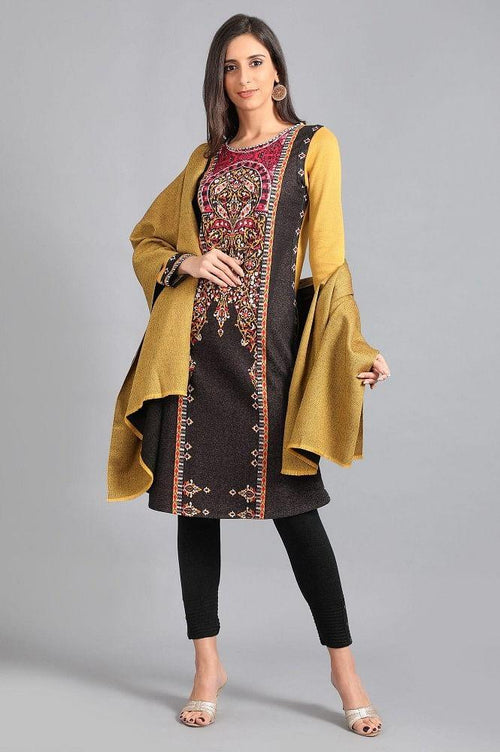 Yellow round neck full sleeve yarn-dyed kurta with contrast detail.