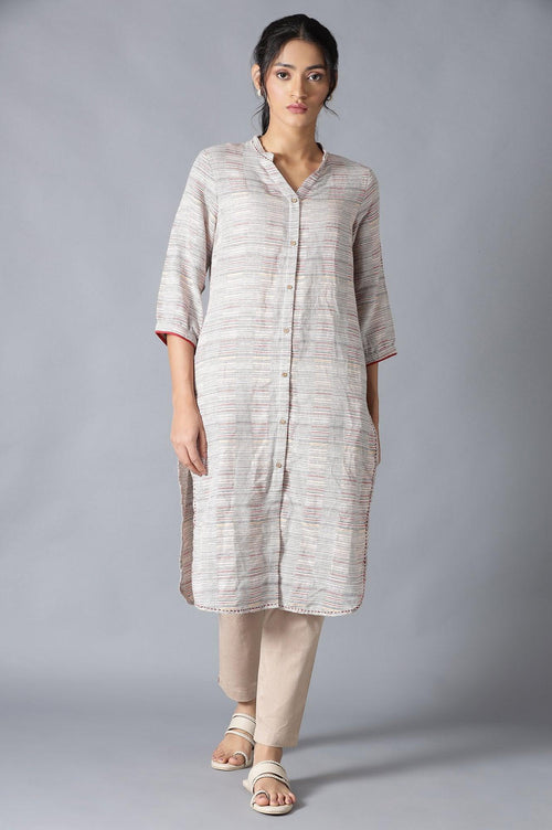 Experience comfort and style with this casual grey kurta, perfect for everyday wear. Crafted from a blend of 80% cotton and 20% rayon, this straight-cut garment offers breathability and ease of movement. The mandarin collar adds a touch of sophistication, while the three-quarter sleeves provide versatility for various occasions. The woven construction technique ensures durability, and the dobby fabric adds a subtle texture to the overall design. The striped pattern elevates the ethnic appeal, making it a versatile choice for both traditional and contemporary settings. This kurta seamlessly combines functionality with fashion, making it an essential addition to your wardrobe for those who appreciate ethnic-inspired clothing with a modern twist.