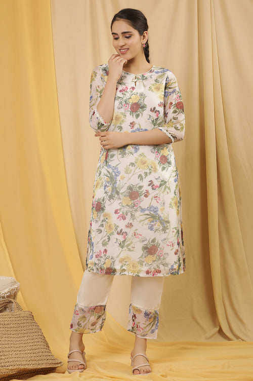 Elevate your ethnic wardrobe with this stunning off-white kurta designed for women. Crafted from 100% man-made fiber polyester, this woven piece combines style and comfort effortlessly. The three-quarter sleeves and keyhole neckline add a touch of elegance to the overall design. The straight silhouette flatters various body types, making it a versatile choice for casual outings. The kurta features a beautiful floral print that adds a feminine charm to the garment. Perfect for those who appreciate a blend of traditional and contemporary styles, this kurta is an ideal choice for various casual occasions. The polyester fabric ensures easy maintenance and durability, making it a practical addition to your wardrobe. Embrace the ethnic charm with this off-white floral printed kurta that seamlessly combines comfort, style, and versatility.