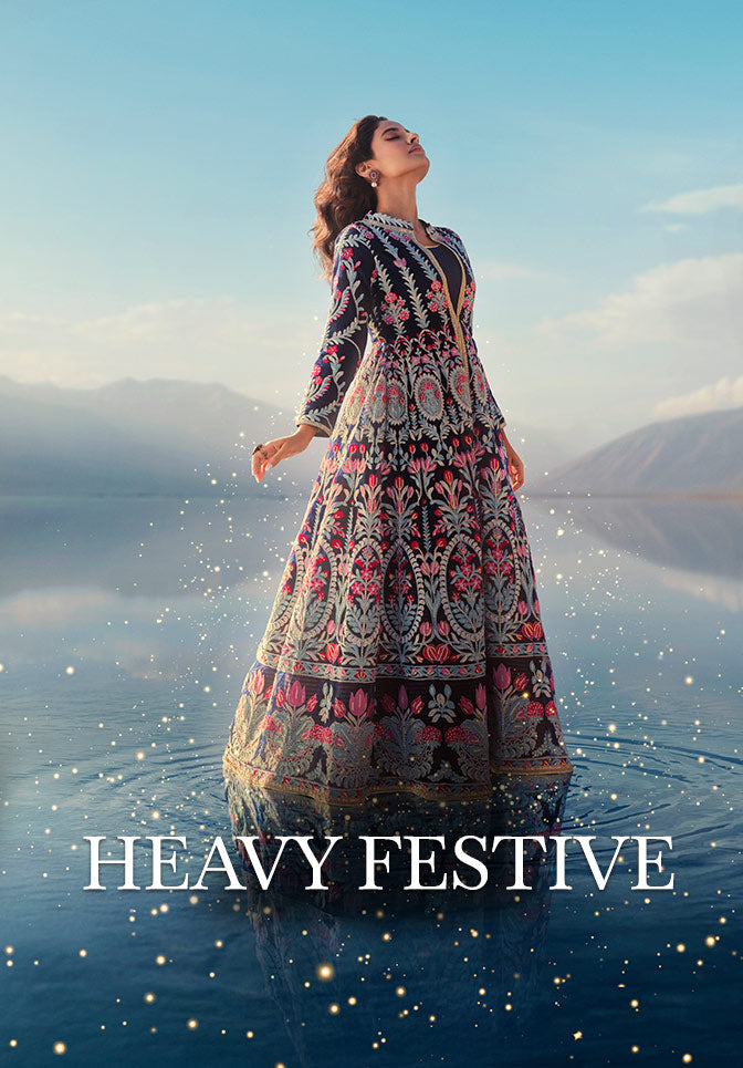 Intricate embroidery, sequins, and subtle prints enhance each dress with festive charm. Perfect for weddings, special occasions, or celebratory evenings, these dresses reflect the brand’s commitment to luxury, sophistication, and designer craftsmanship, offering women versatile ethnic ensembles that are both graceful and statement-making.
