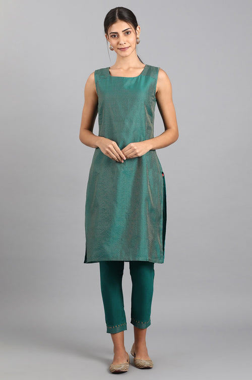 Teal shirt collar kurta with gathered jacket. It is a part of Pop Sets.