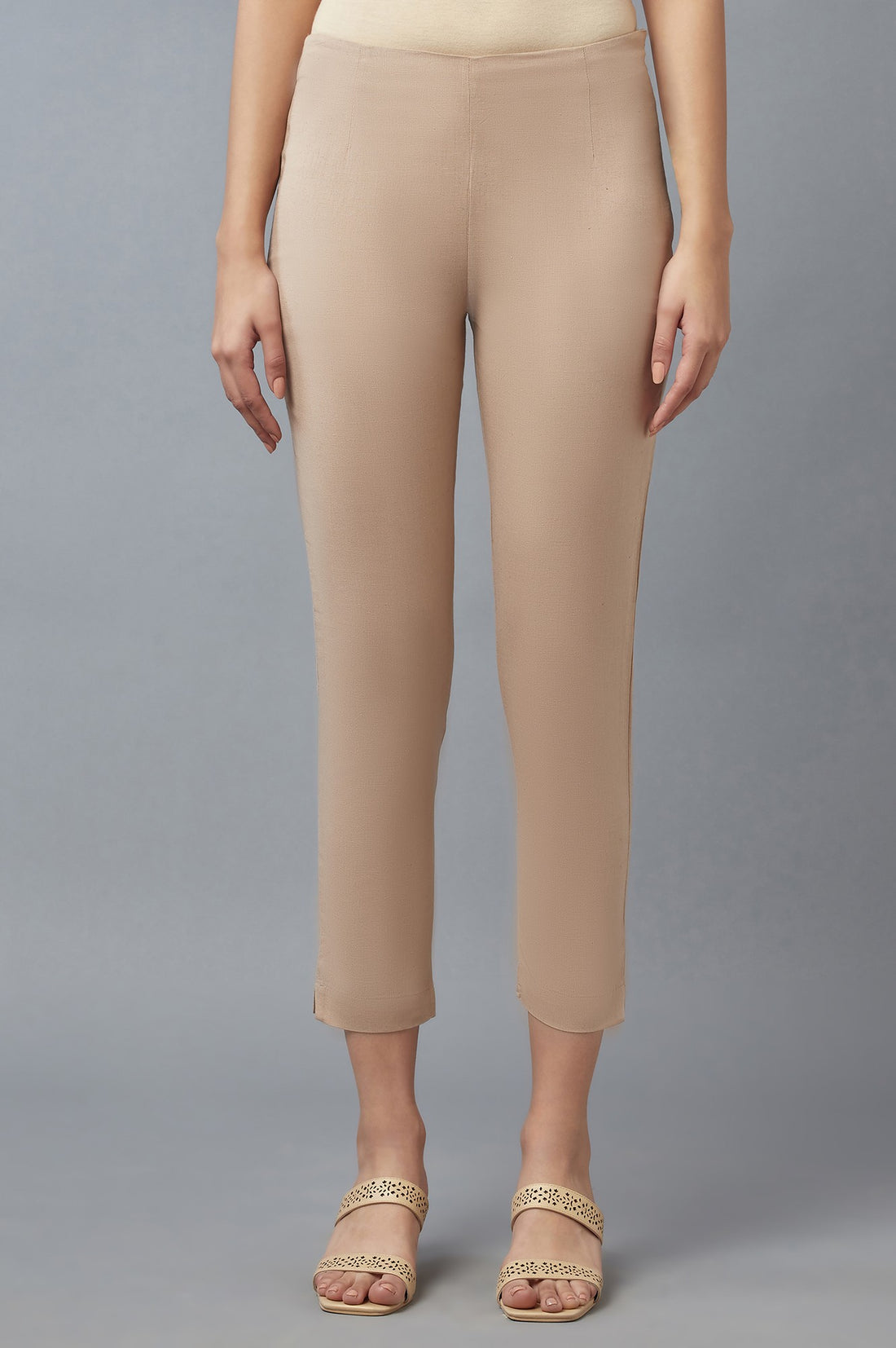Well-tailored to offer you a perfect fit, this beige cotton crop trouser from W's #UNETHNICALS collection is a great add-on to your wardrobe.