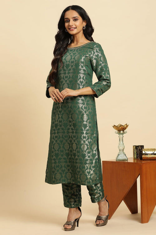 Black Rayon Jacquard Kurta And Pant Festive Set - wforwoman