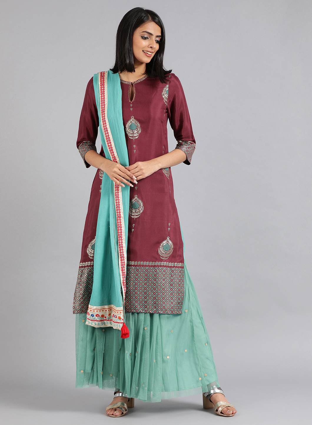 Blue skirt with panel detail.