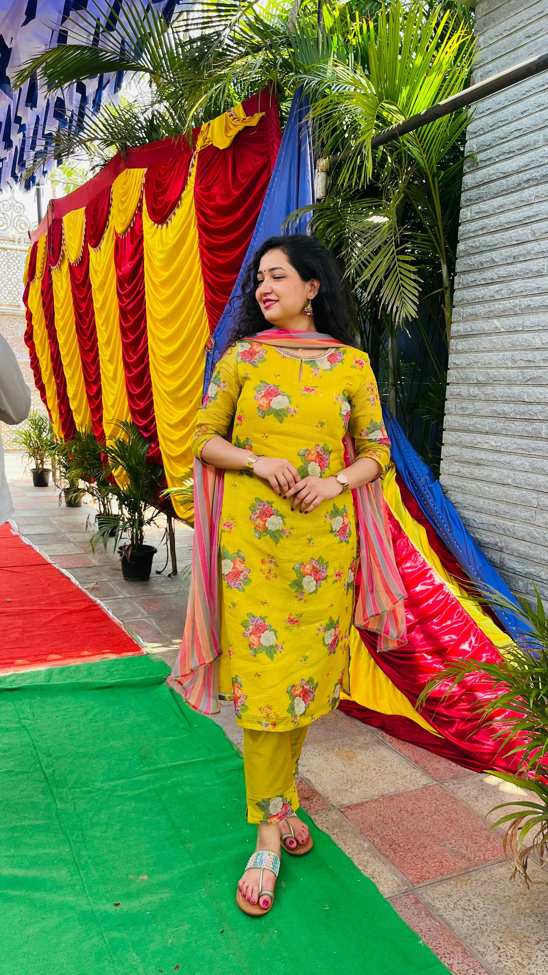 Elevate your ethnic style with this stunning women's ensemble from our Ethnic Sets category. The set includes a beautifully crafted kurta, slim pants, and a complementing dupatta, perfect for those special occasions that demand a touch of elegance. The kurta features a charming keyhole neckline and three-quarter sleeves, adding a contemporary flair to the traditional silhouette. Adorned with an exquisite floral print, this straight-cut outfit in a refreshing green hue is sure to turn heads. Crafted from 100% man-made fiber polyester, this woven set offers both comfort and durability. Embrace your cultural roots with this ethnic masterpiece that seamlessly blends modern design with timeless charm.