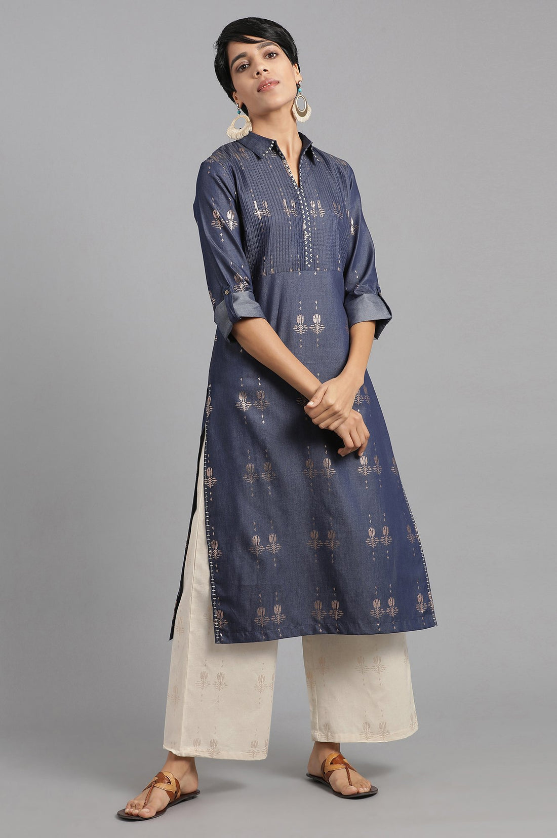 Copper flared parallel pants.