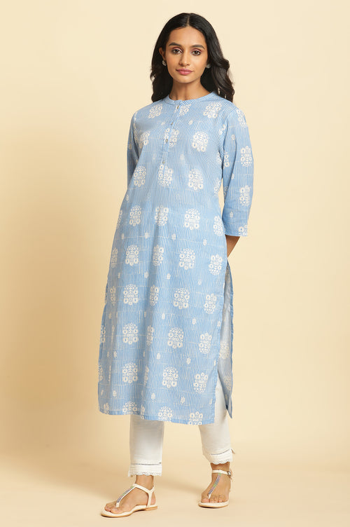 This dark blue geometric printed straight kurta is a contemporary choice for women who love bold ethnicwear. Featuring a modern straight silhouette with eye-catching geometric prints, it makes a striking statement for everyday wear. The deep blue tone enhances its refined appeal, while the lightweight fabric keeps it breathable and comfortable. This kurta for women transitions effortlessly from office to casual evenings, offering versatility in styling. Pair it with slim white trousers or beige palazzos for a chic ensemble. With its modern print and classic cut, this kurta embodies timeless ethnic elegance with a modern edge.
