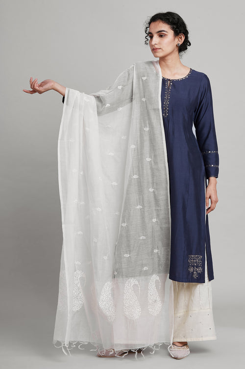 Dark Brown Cotton Silk Drape With Tonal Chikankari Embroidery.