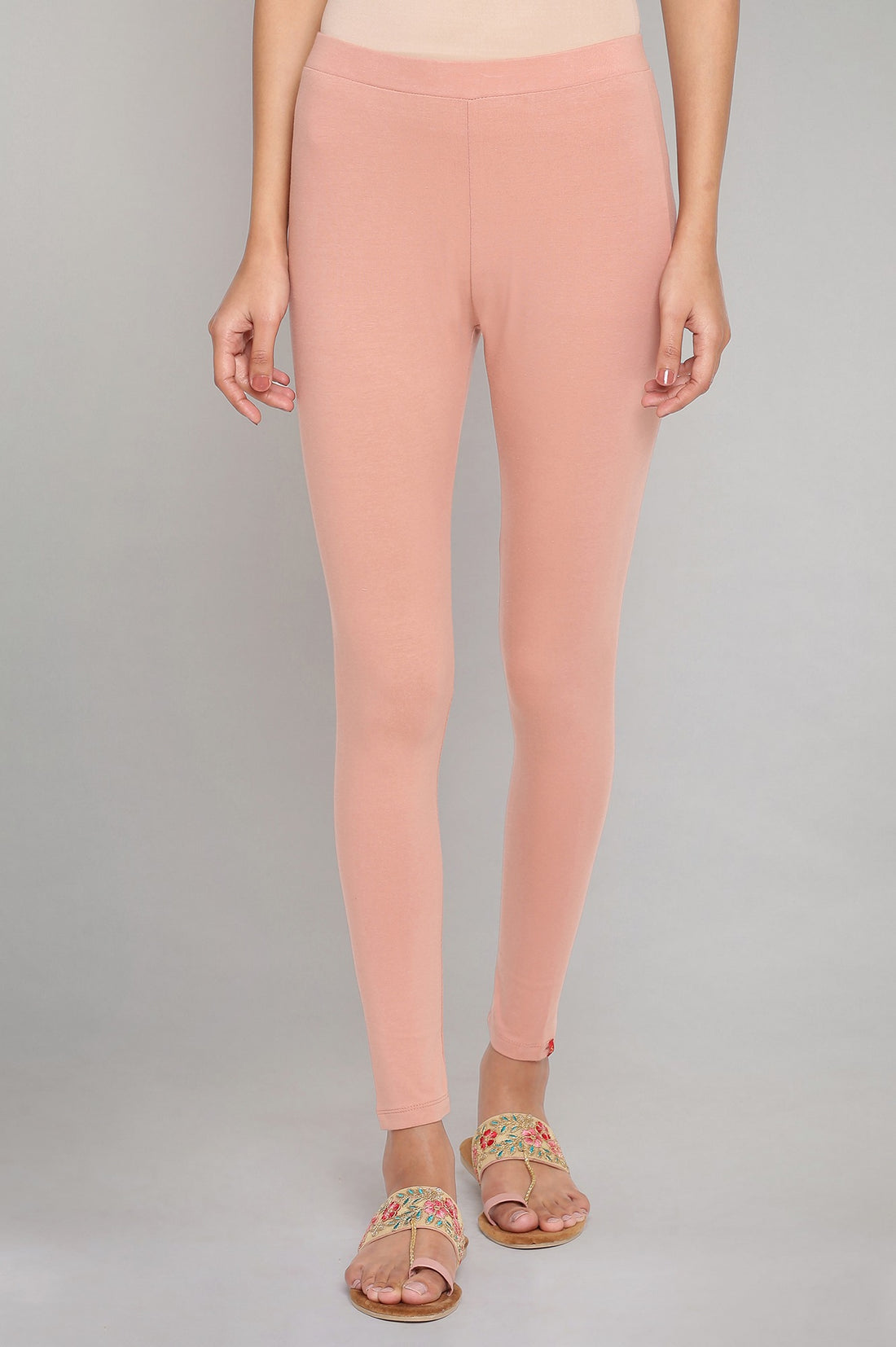 Dusty pink coloured full length skinny fit solid tights. It comes with an elasticated waistband.