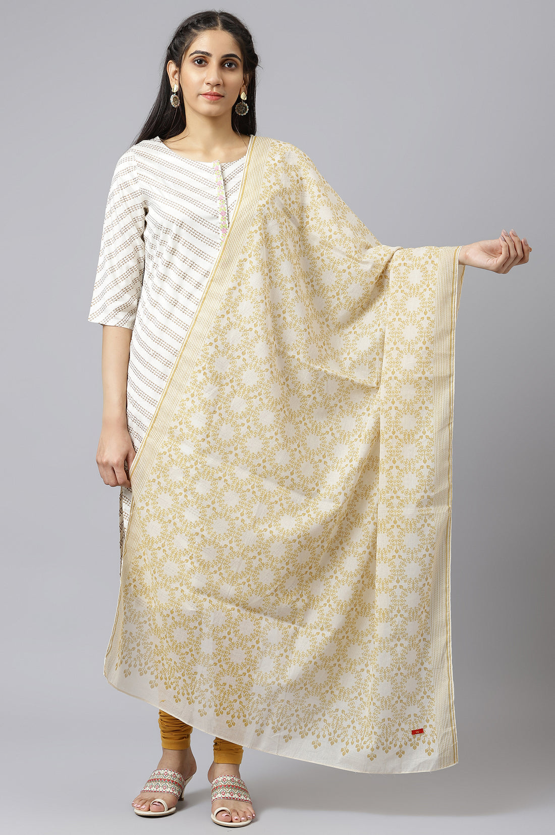 Ecru And Yellow Voile Printed Dupatta