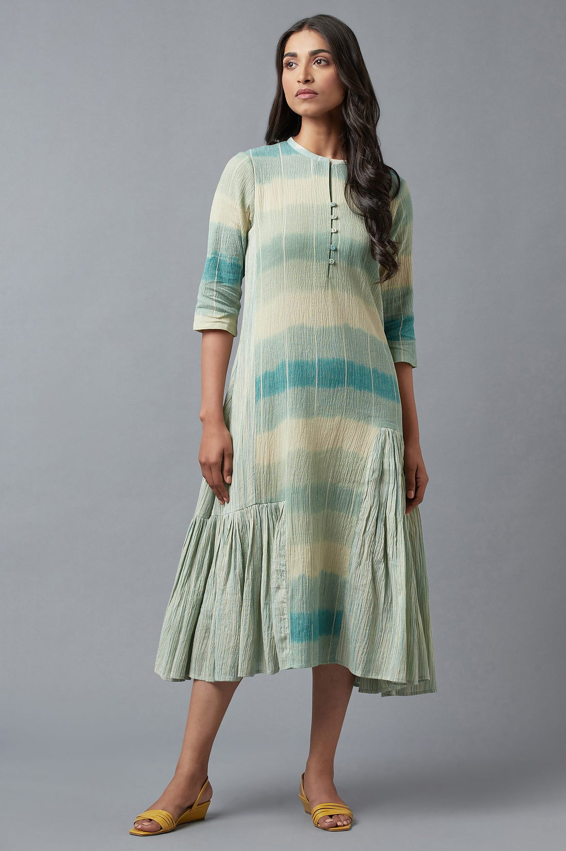 Embrace casual comfort with this stylish green kurta made from 100% pure cotton. The three-quarter sleeves provide a relaxed look, perfect for everyday wear. Featuring a band neckline, this A-line kurta offers a flattering silhouette for various body types. The woven construction technique ensures durability and a comfortable fit. The ethnic-inspired printed design adds a touch of traditional charm to this casual piece. Ideal for running errands, meeting friends, or lounging at home, this cotton kurta combines practicality with style. The breathable fabric keeps you cool and comfortable throughout the day, making it a must-have addition to your casual wardrobe.