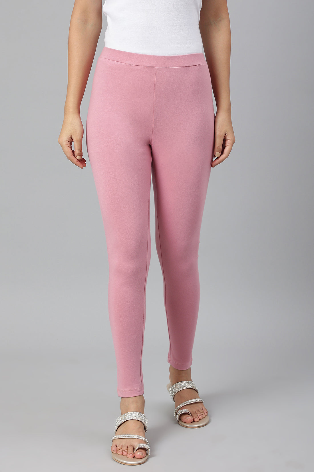 Lavender Mid Rise Knitted Tights In Cotton Jersey Lycra