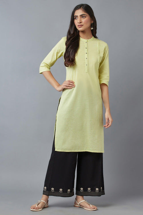 Embrace casual elegance with this green ethnic kurta, perfect for everyday wear. Crafted using a woven construction technique, this straight-cut kurta exudes a timeless charm. The three-quarter sleeve length adds a touch of versatility, suitable for various occasions. Featuring a band neckline, this kurta combines comfort with style. Made from pure cotton, it ensures breathability and softness against the skin. The solid green color makes it a versatile piece that can be easily paired with different bottoms. With its 100% cotton composition, this kurta promises durability and easy maintenance. Whether you're running errands or attending a casual gathering, this ethnic kurta is an ideal choice for those who appreciate comfort without compromising on style.