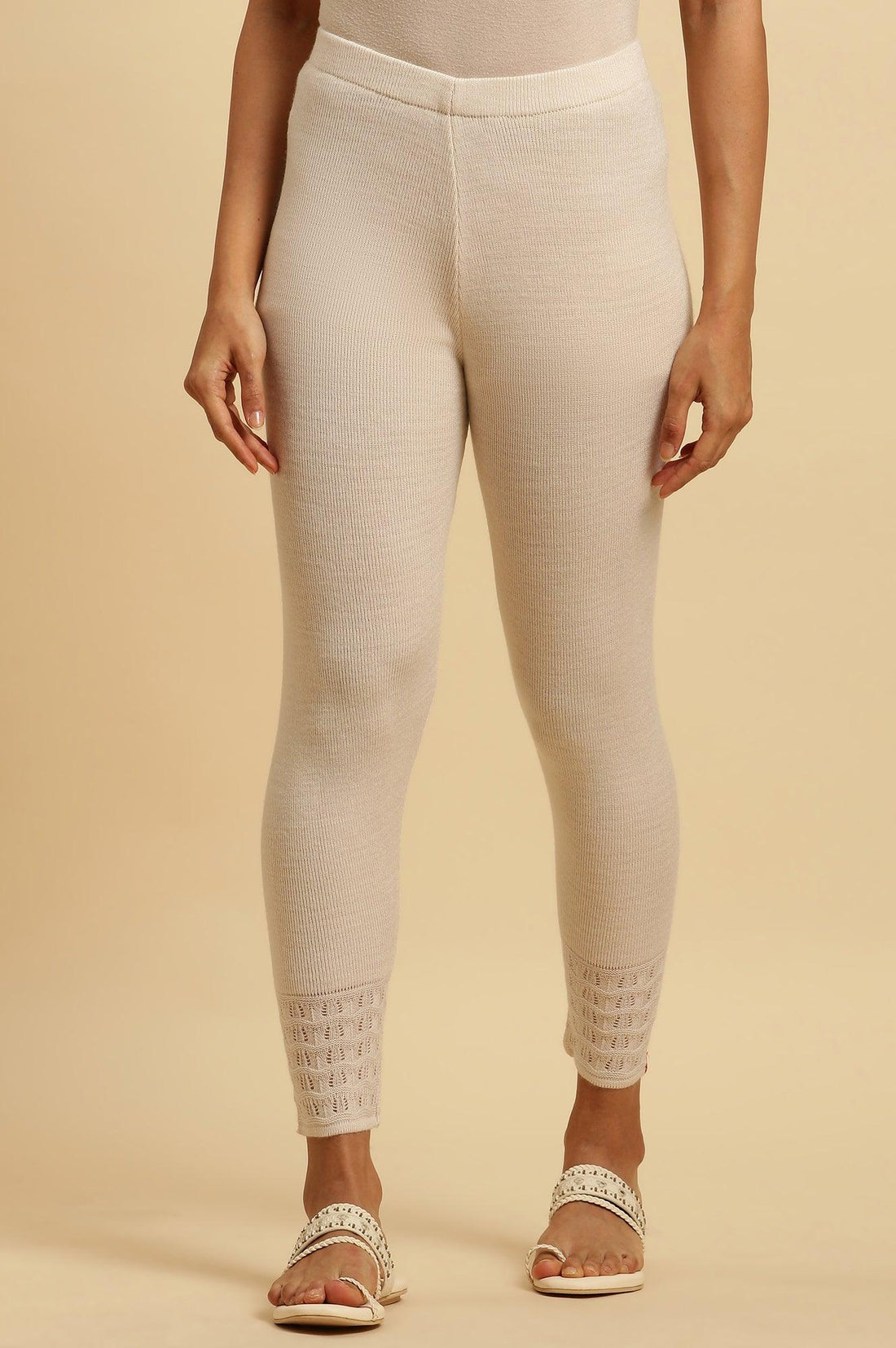 The Sea Salt Ankle Length Tights Crafted In 100% Acrylic With Beautiful Knit Down Border Design At Hem.