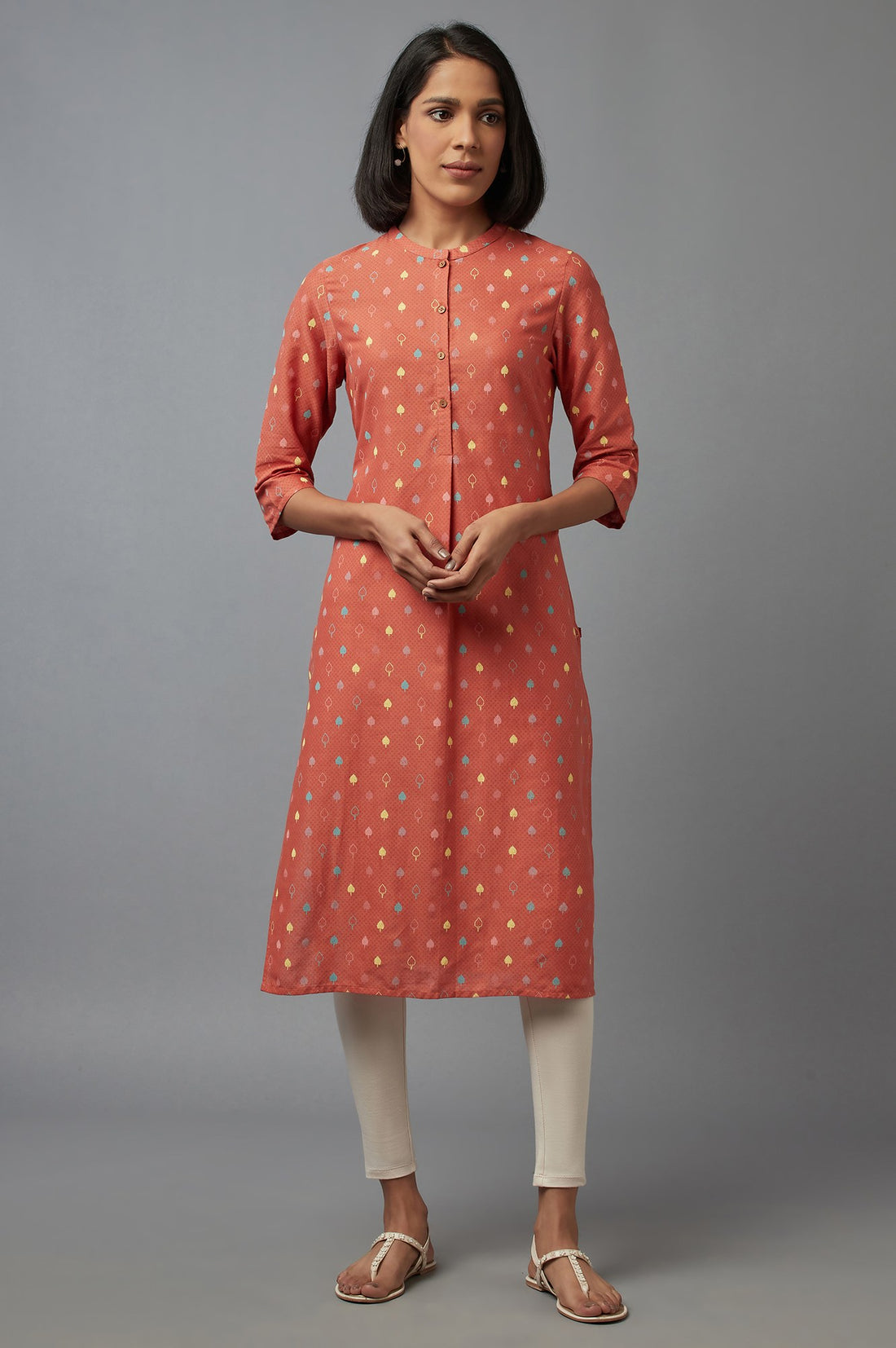Elevate your ethnic wardrobe with this stunning printed kurta. Crafted from a blend of 88% cotton and 12% flax, this garment offers both comfort and style. The three-quarter sleeves provide a versatile look suitable for various occasions. The band neckline adds a touch of sophistication, while the straight cut ensures a flattering silhouette. Perfect for casual wear, this orange kurta features a woven construction technique that enhances its durability. The addition of flax to the fabric composition gives it a unique texture and breathability, making it ideal for warm weather. This kurta seamlessly combines traditional elements with modern design, making it a must-have for those who appreciate ethnic fashion with a contemporary twist.