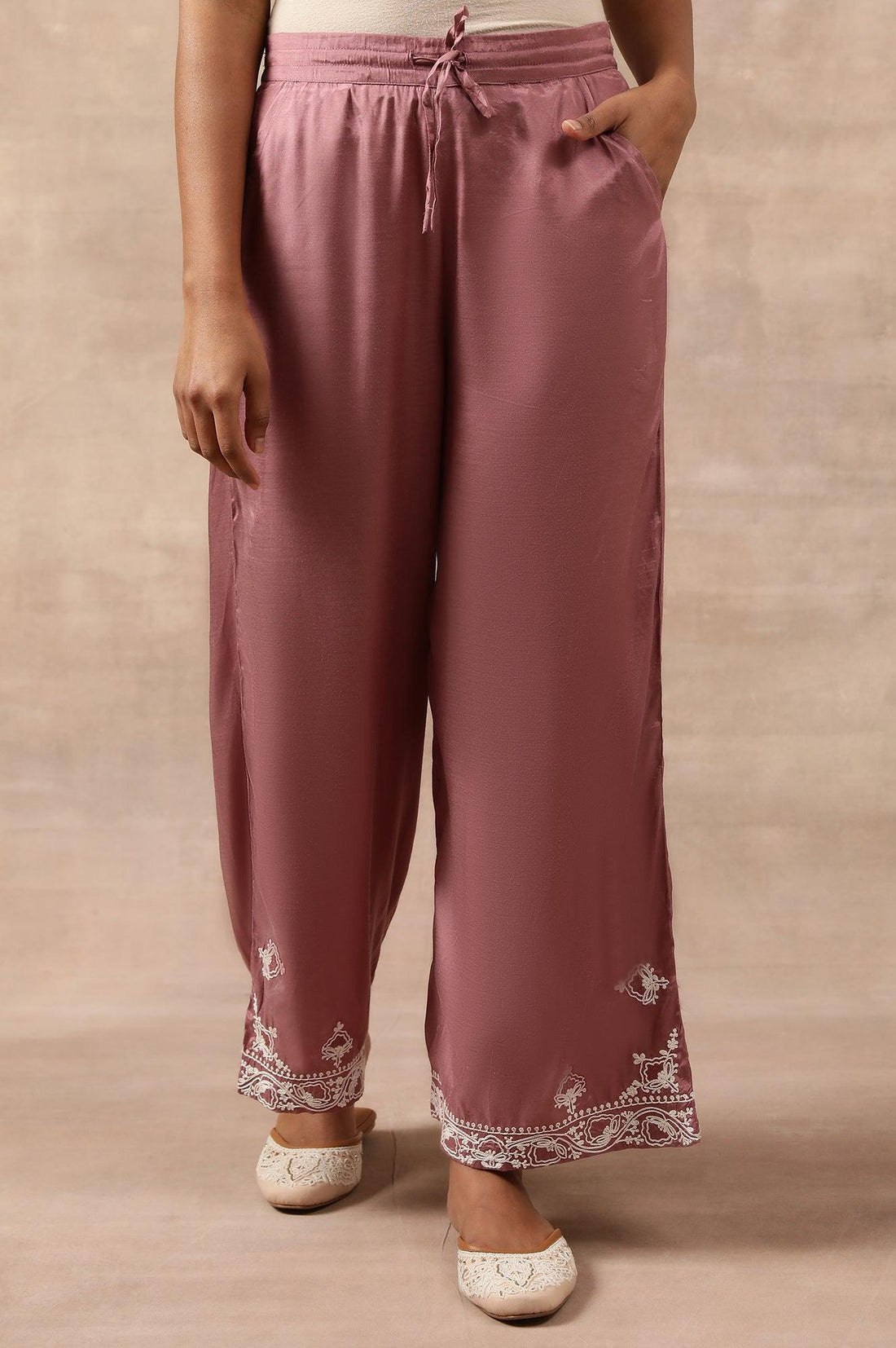 Pink Parallel Pants With Drawstring Detail At Front And Contrast Ecru Dori Embroidery At Hem.