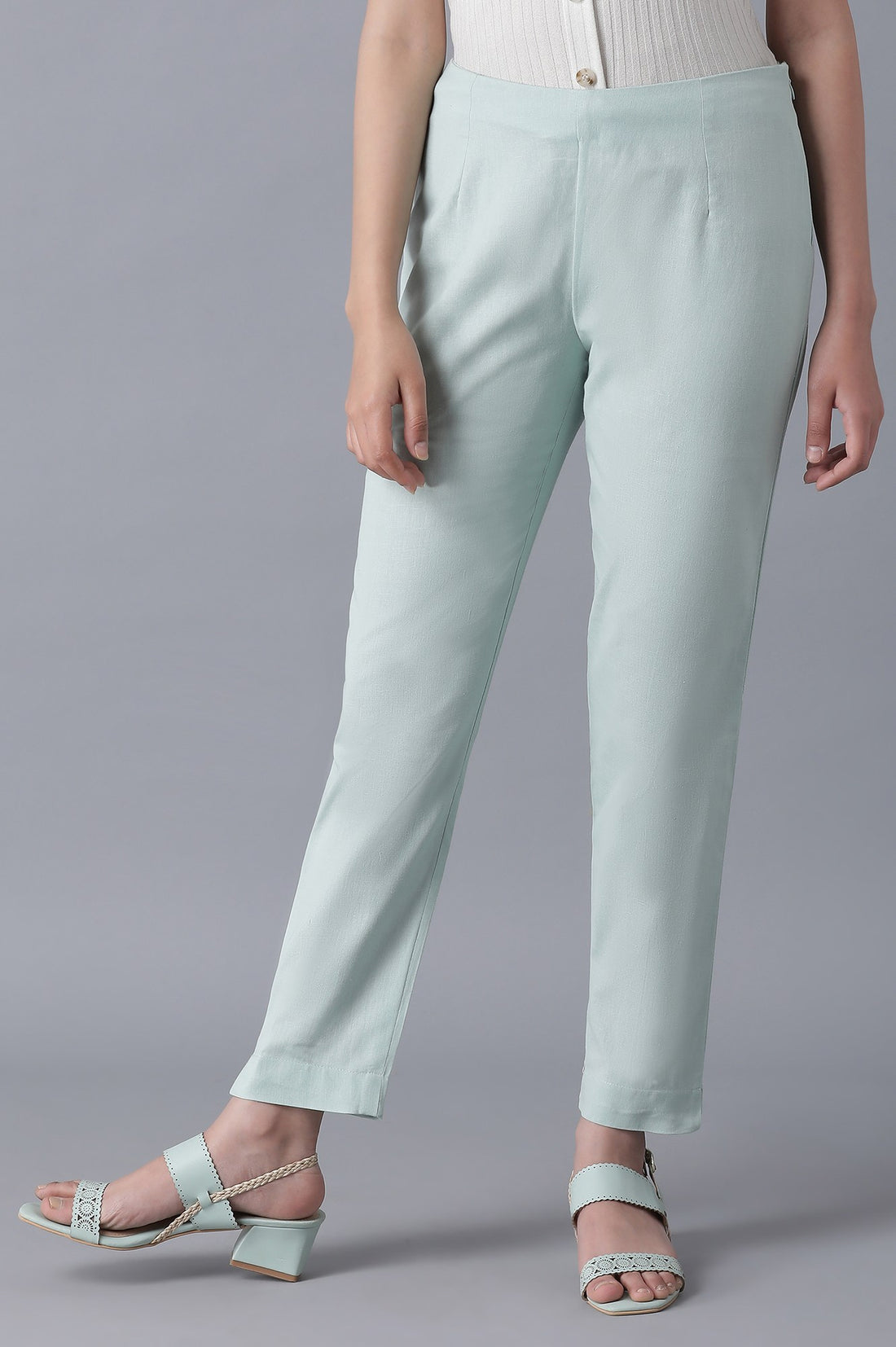 Aqua solid slim pants with side button, zip and partially elasticated waistband.