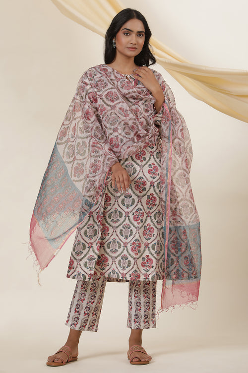 Style This Block Printed Drape With Matching Block Print Kurta And Ecru Pants.
